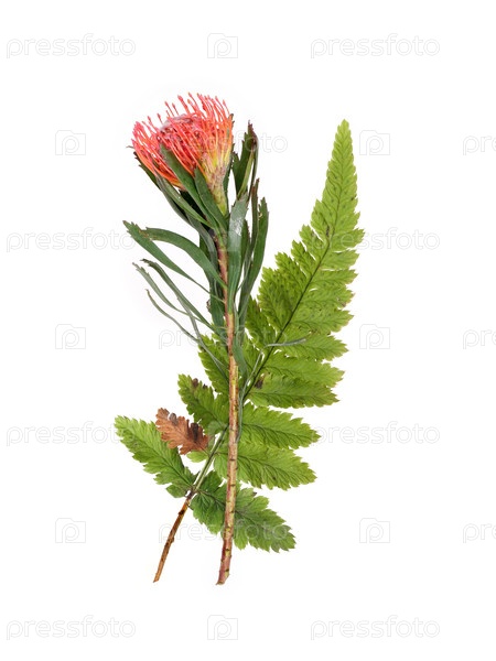 Цветок лейкоспермуса, также известный как протеа-подушка или подушеобразная протеа выделяется на белом фоне, резка готова