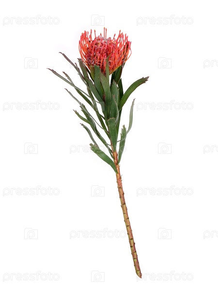 Цветок лейкоспермуса, также известный как протеа-подушка или подушеобразная протеа выделяется на белом фоне, резка готова