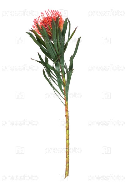 Цветок лейкоспермуса, также известный как протеа-подушка или подушеобразная протеа выделяется на белом фоне, резка готова