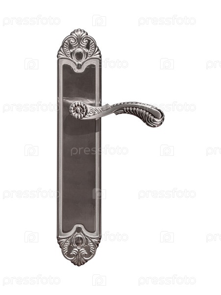 Серебряная дверная ручка, изолированная на белом фоне дизайнерского элемента с подстриженной дорожкой
