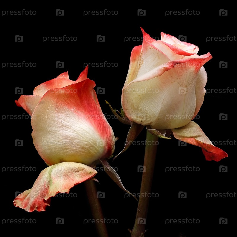 Баннер с яркими натуральными розами, изолированными на черном фоне