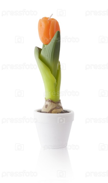 Одинокий тюльпан со свечами в вазе, изолированной на белом фоне