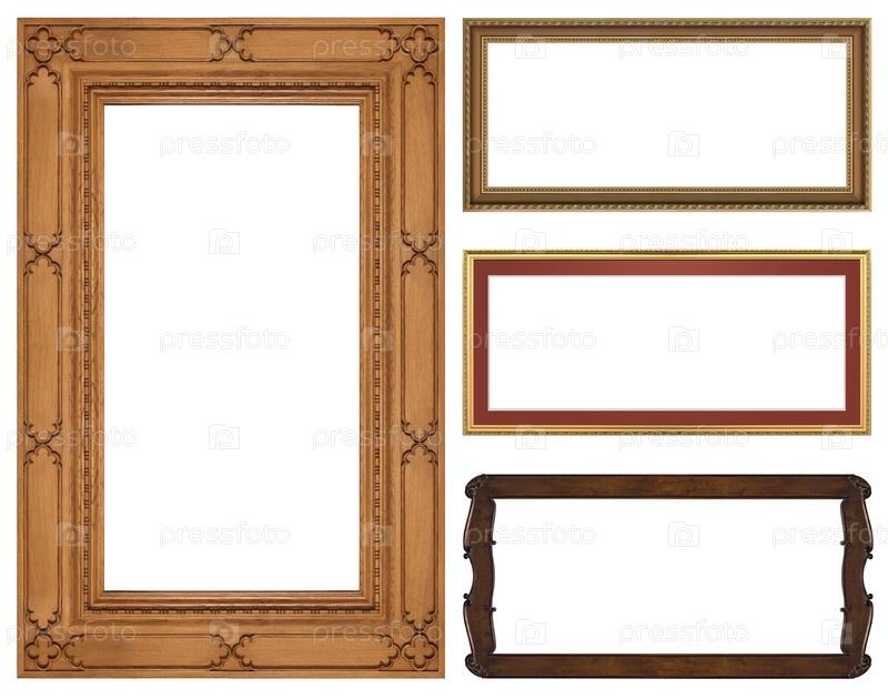 Набор деревянных рамок для картин, зеркал или фотографий, изолированных на белом фоне