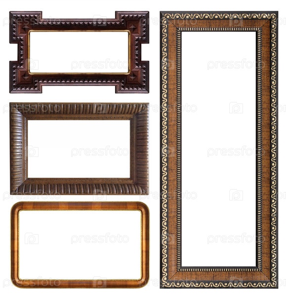 Набор деревянных рамок для картин, зеркал или фотографий, изолированных на белом фоне