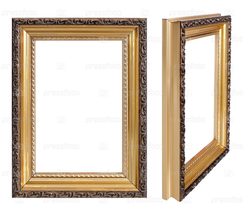 Золотая рама для картин, зеркал или фотографий в будущем изолирована на белом фоне