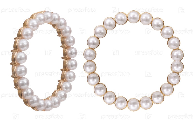 Золотая рама с жемчужинами для картин, зеркал или фотографий в фронтальной и перспективной форме, изолированная на белом фоне