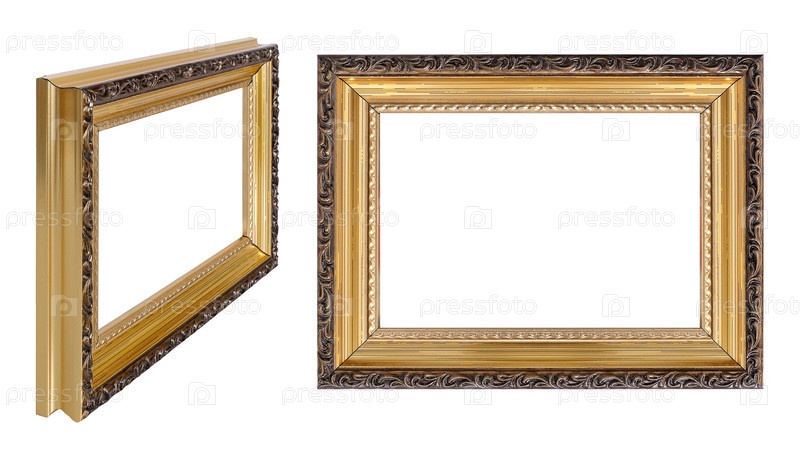 Золотая рама для картин, зеркал или фотографий в будущем изолирована на белом фоне