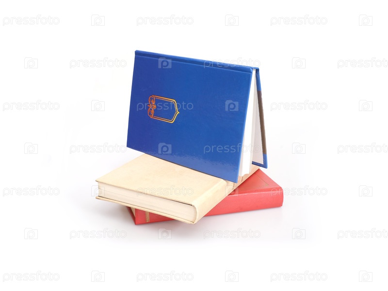 Куча красных, желтых и синих книг изолирована на белом фоне