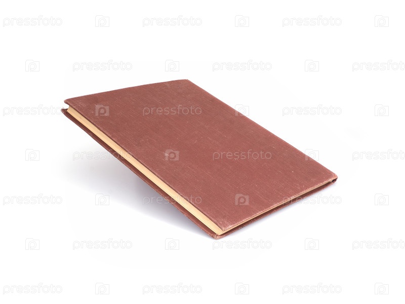 Старая книга в коричневой обложке с белыми листами, изолированными на белом фоне