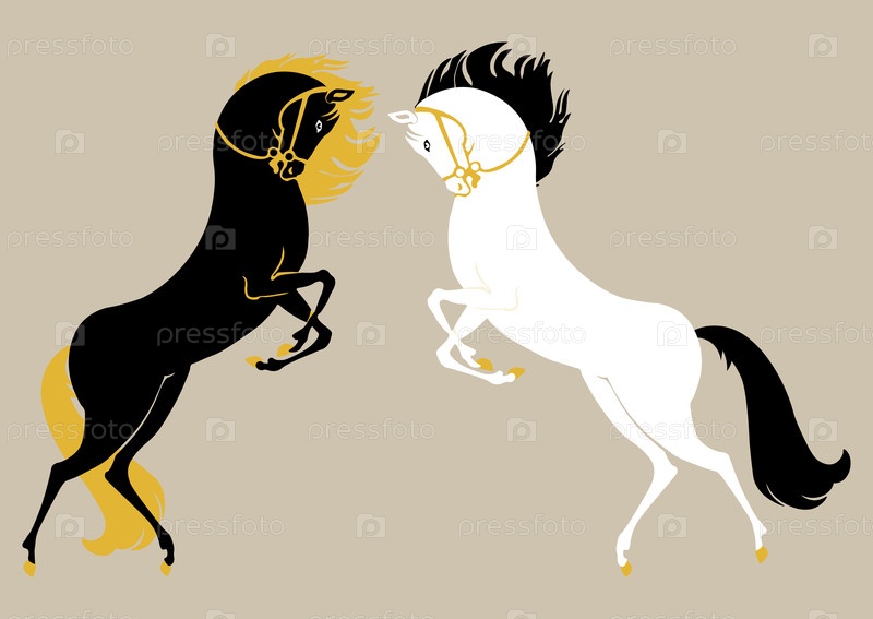 Векторный рисунок: черно-белые лошади выросли