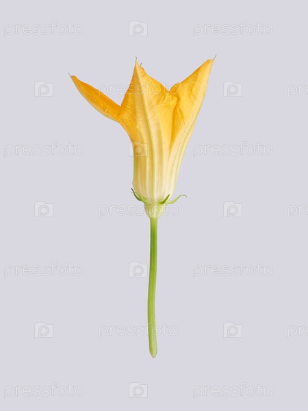 Ярко-желтый макроцвет тыквы изолирован на белом фоне, отрезка готова