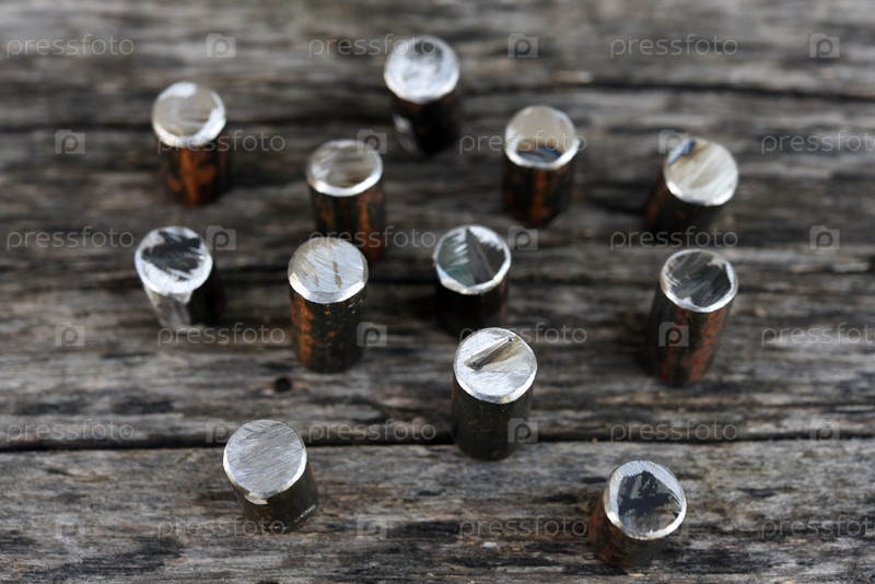 Металлические стержни.Разрежьте металлическую фитингу.Металловые кусочки на заднем плане