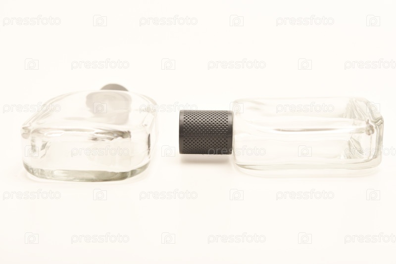 Элегантная прозрачная флакона, когда-то наполненная ароматом, теперь стоит чистой и минималистичной, идеально подходит для косметики или концепций красоты