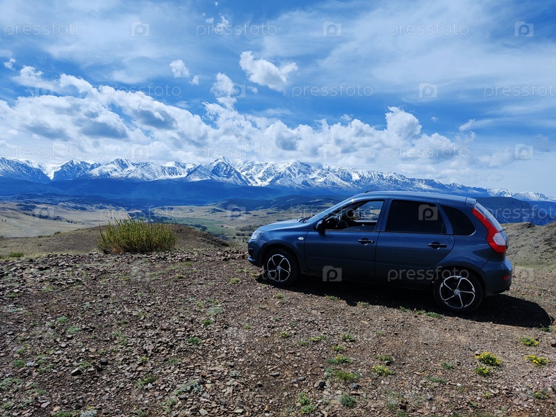 Автомобиль на фоне Северного хребта Чуй в Алтае