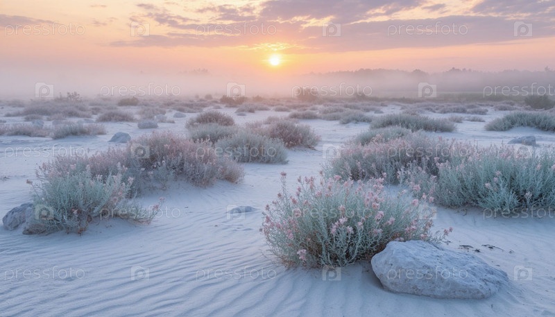 Белая степь в розовом тумане