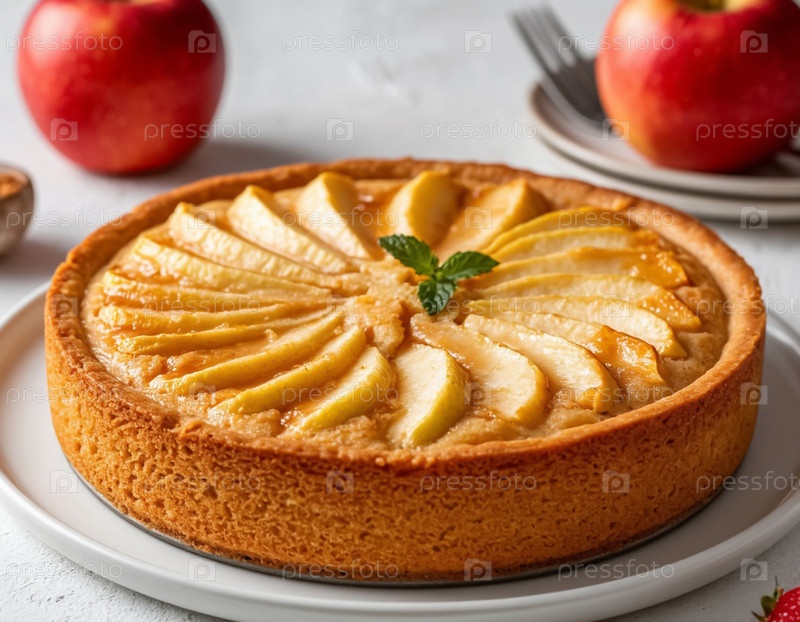 Яблочный пирог Шарлотты на белом фоне