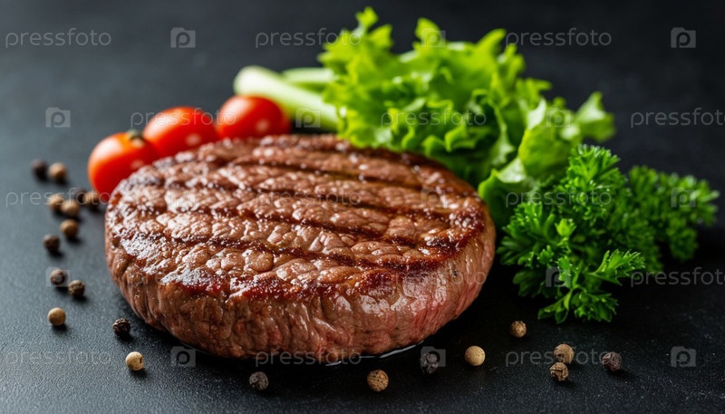 Говядиная стейк на черном фоне, копировальное пространство