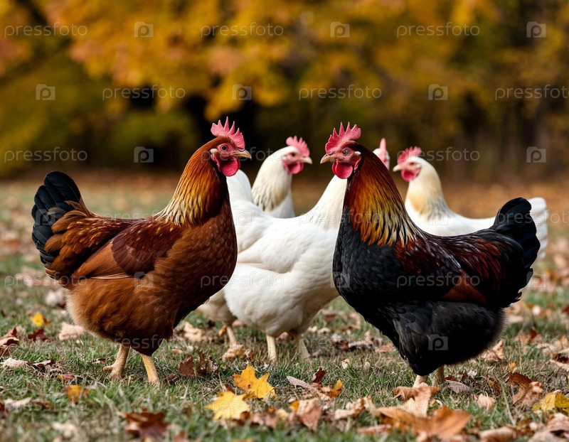 Куры на лужайке летом