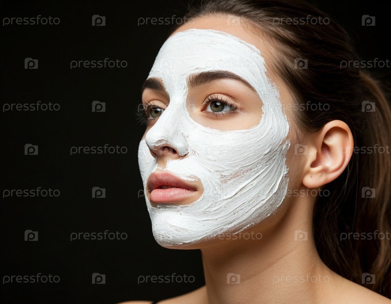 Косметическая глиняная маска на лице женщины