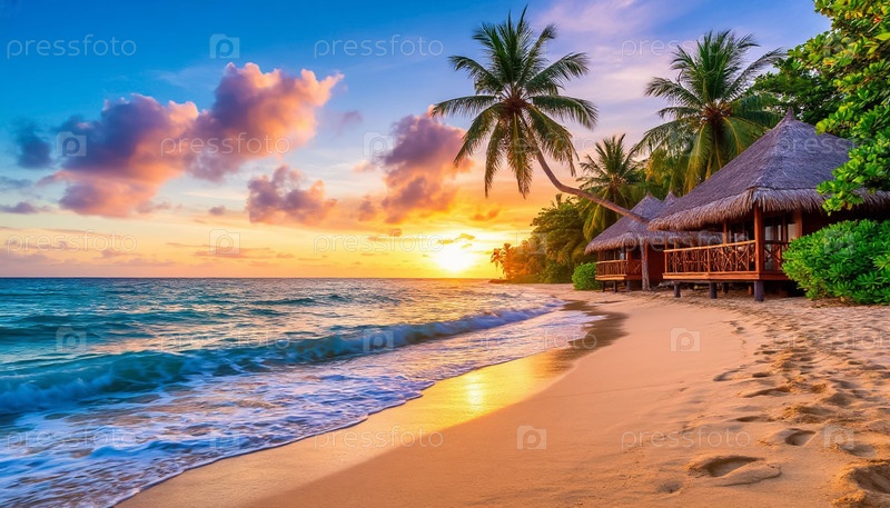 Соломенная крыша бунгала у моря. Азиатский туристический сезон