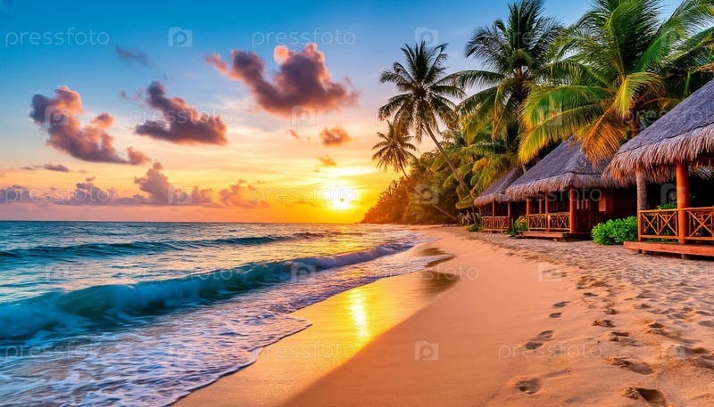 Соломенная крыша бунгала у моря. Азиатский туристический сезон