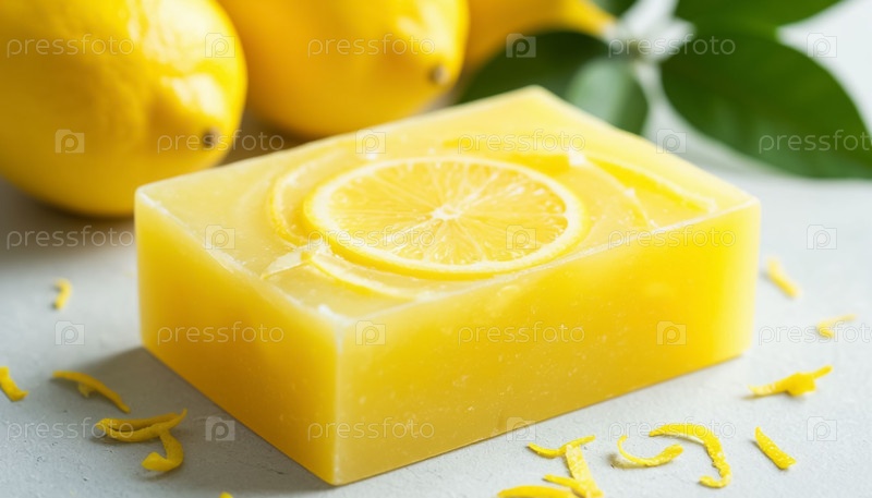 Естественное лимонное мыло на деревянной стойке