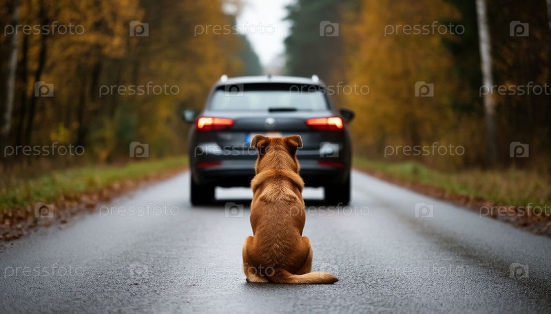 Собака смотрит, как машина уходит