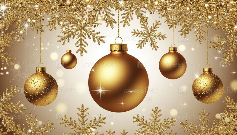 Новогодний фон с золотыми шарами и блеском