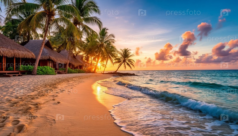 Соломенная крыша бунгала у моря. Азиатский туристический сезон