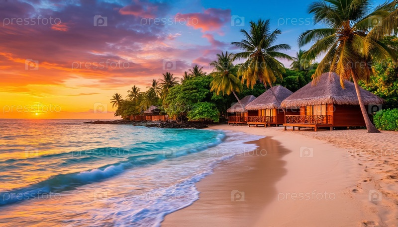 Соломенная крыша бунгала у моря. Азиатский туристический сезон