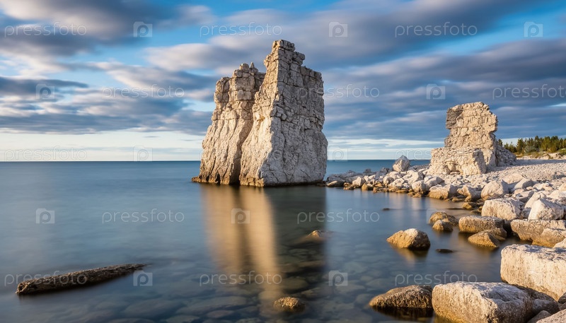 Нежный ландшафт Молре с высокими белыми скалами, выступающими из воды