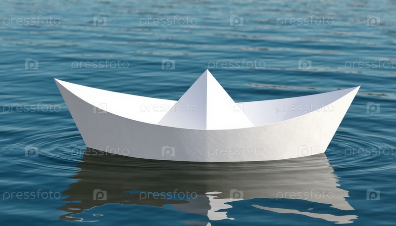 Белая бумажная лодка плавает одна в воде
