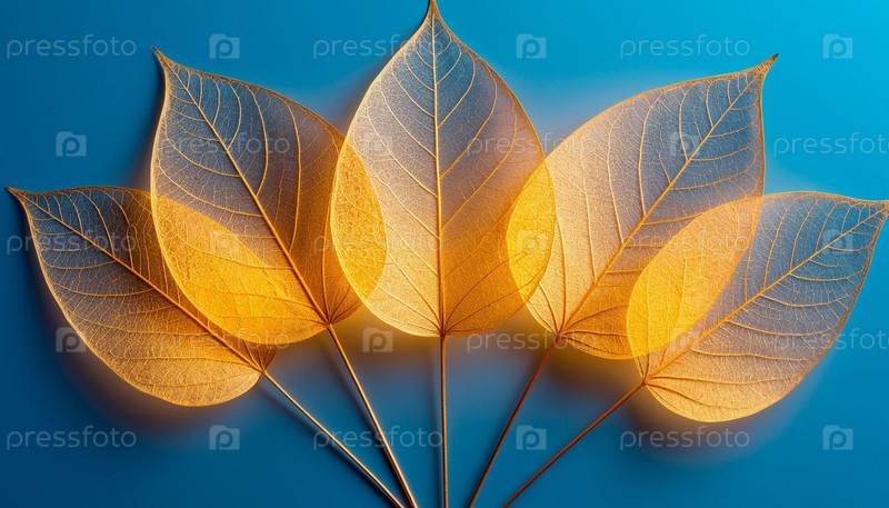 Иллюстрация на фоне золотых сияющих осенних листьев на синем фоне