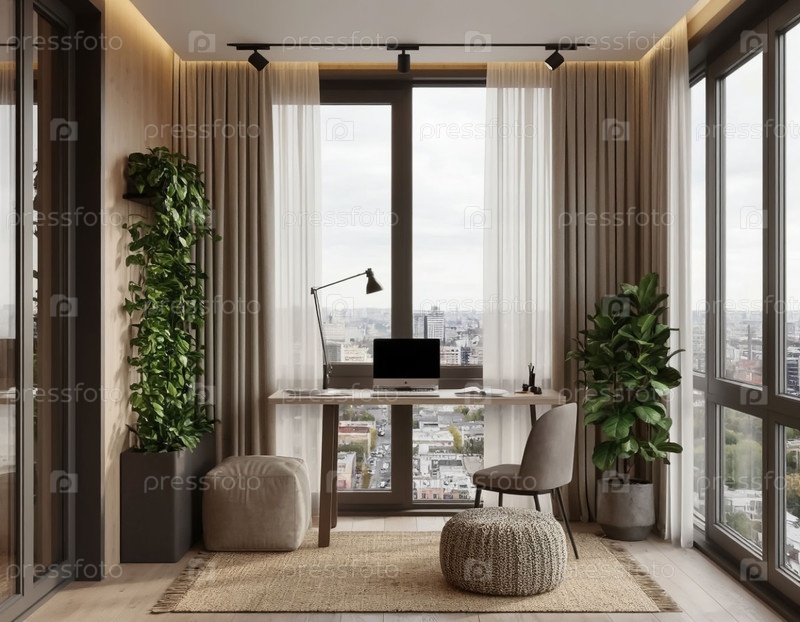 Обучение на лоджии или крытой террасе в многоквартирном доме Уютный и современный интерьер