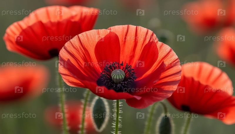 Красный мак ближайший план, 3D-рендеринг, летнее искусство природы