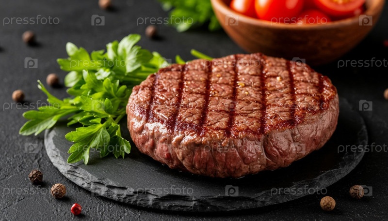 Говядиная стейк на черном фоне, копировальное пространство