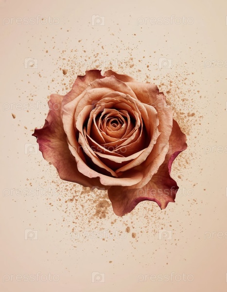 Сухая роза превращается в пыль среди пастельных кремов