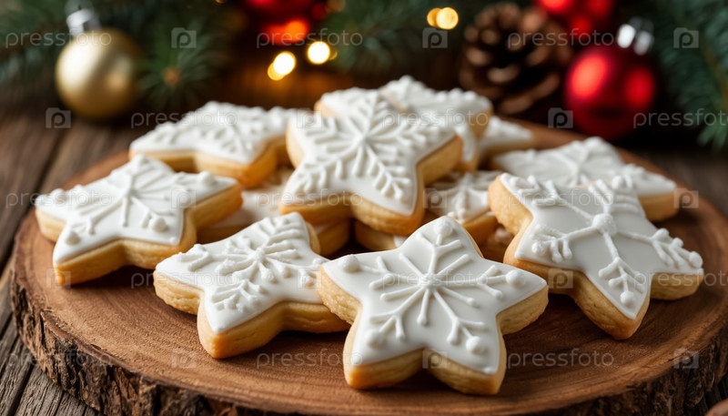 Рождественские печенье с белым ласковым на деревянном фоне