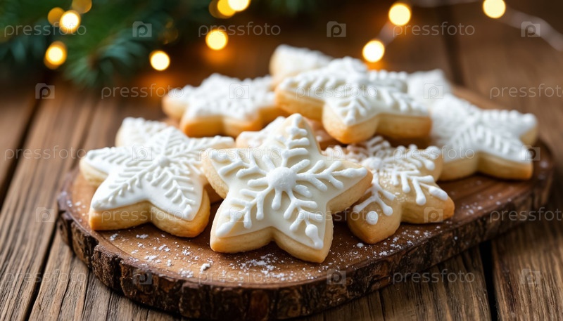 Рождественские печенье с белым ласковым на деревянном фоне