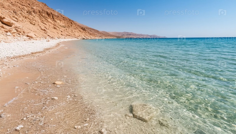 Красивый морской берег - прозрачные мягкие голубые волны, идущие вдоль светлого песка, много соли на берегу
