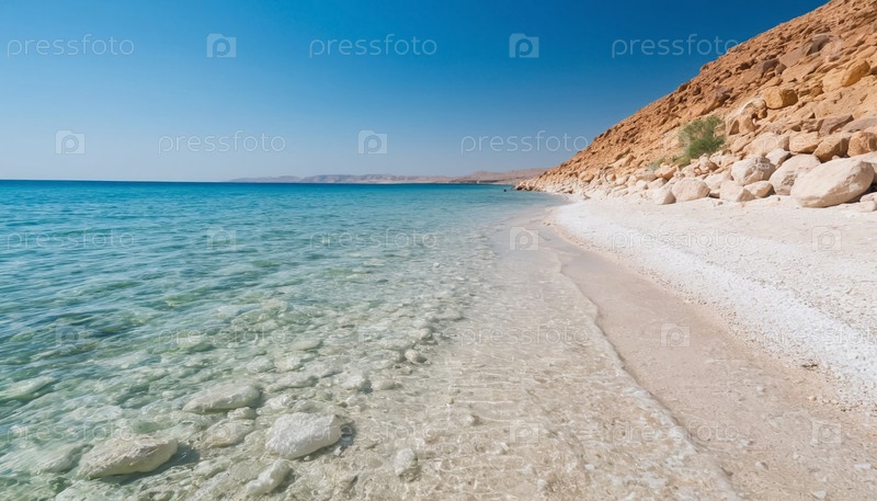 Красивый морской берег - прозрачные мягкие голубые волны, идущие вдоль светлого песка, много соли на берегу
