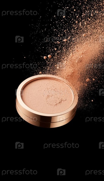 Косметический бежевый порошок с рассеянием на черном фоне