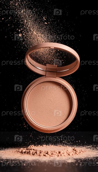 Косметический бежевый порошок с рассеянием на черном фоне