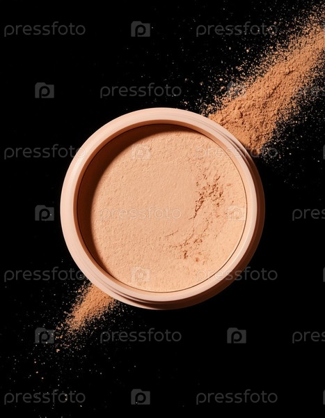 Косметический бежевый порошок с рассеянием на черном фоне