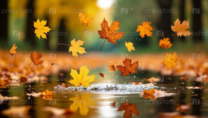 Осенние листья падают в лужу в парке