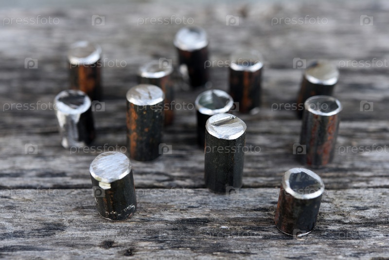 Металлические стержни.Разрежьте металлическую фитингу.Металловые кусочки на заднем плане