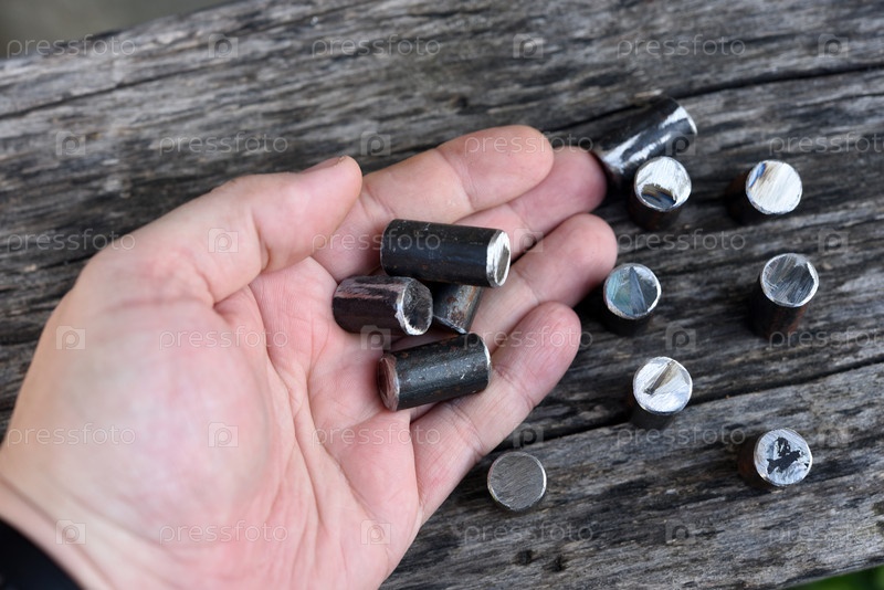 Металлические стержни в руке.Разрежьте металлические фитинги