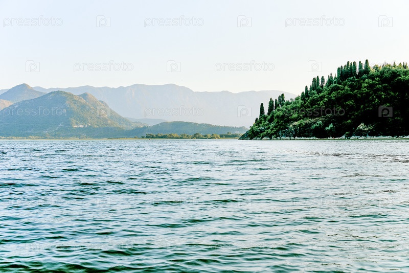 Озеро Скадар в Черногории, летний живописный водный ландшафт на природе солнечный день пруда