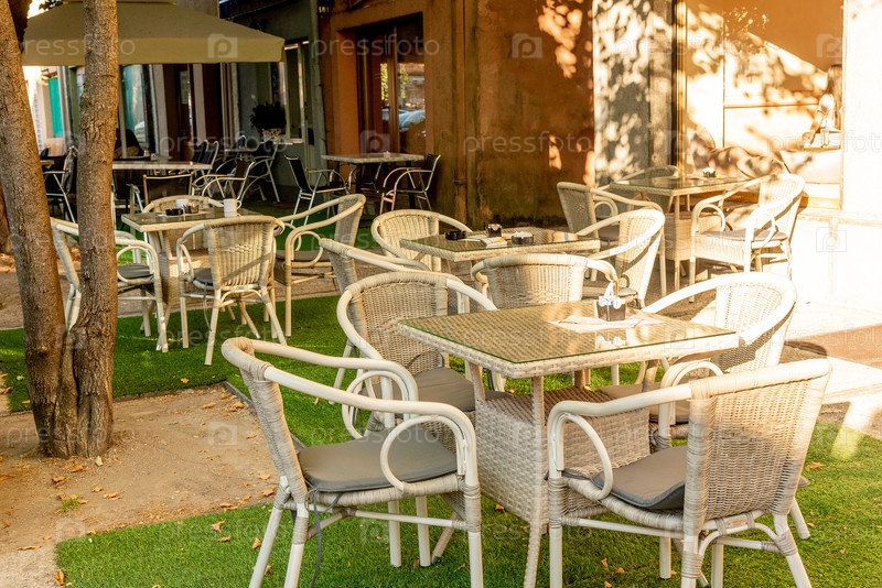 Ресторан кафе терраса под открытым небом, городской ландшафт Cetinje city of Montenegro