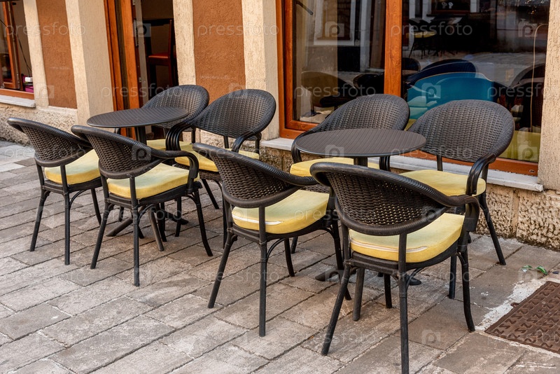 Ресторан кафе терраса под открытым небом, городской ландшафт Cetinje city of Montenegro